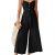 ANRABESS Women’s Summer Spaghetti Straps V Neck Smocked Wide Leg Jumpsuits Rompers With Belt