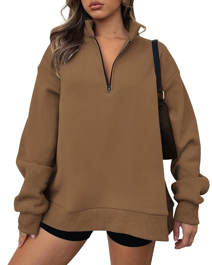 - CASUAL QUARTER ZIP SWEATSHIRT: Women’s Fashion Sweatshirts With Two Side Pockets, Which Can not Only Put Your Hands In, But Also Hold Some Small Things When You Jogging Or Walking. This Oversized Sweatshirt Has A Hip-Length And Loose Cut, Which Makes You Have A High Level Of Comfort And Freedom