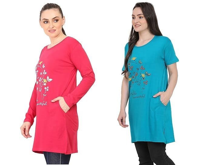 CRAFTLY Women’s/Ladies/Girls Long Polo T-Shirts | Slim Fit Solid T-Shirts | Tops Stylish Round Neck Regular Fit Cotton Half Sleeve Shirt Combo (Pack of 2)