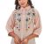 KESUDI Women's Floral Embroidered Button-Down Shirt | Linen 3/4 Sleeve Collared Top Shirt | Stand Collared Casual Wear Top Shirt