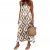 QUECY Women’s Fashionable Brown V-Neck One Piece A-line Sleeveless Midi Dress