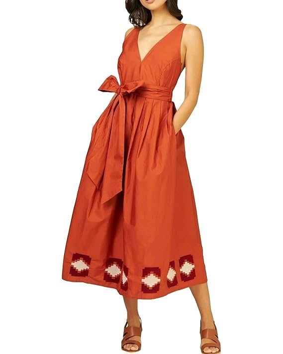 • Delicate embroidery on the hem adds a touch of sophistication to the calf length dress.