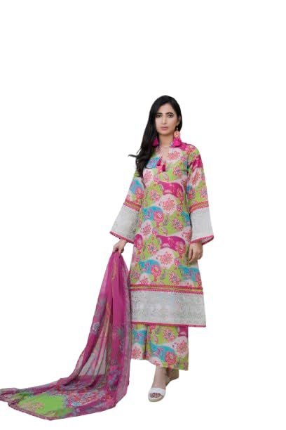 Add to cartTHE COTTON LAWN SHOP Women’s 3 Piece Printed Cotton Salwar Suit Dupatta With Embroidered Neck Patch lace Dress Material – Pink