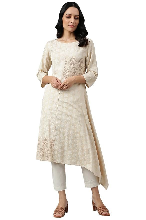 Add to cartW for Woman Women’s Rayon Asymmetric Paisley Print Kurta in Boat Neck